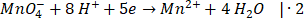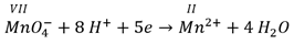– porównania stopnia utlenienia manganu w jonach MnO4- i Mn2+ (7-2 = 5);