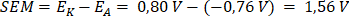 Obliczamy różnicę potencjałów tych półogniw, czyli SEM ogniwa: