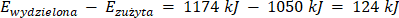 Jak widać, energia wydzielona ma wyższą wartość niż zużyta i zysk energetyczny wynosi: