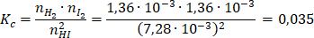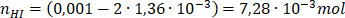 mola jodowodoru, czyli równowagowa liczba moli jodowodoru: