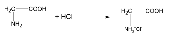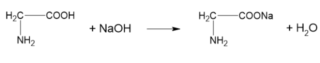 Aminokwasy mają właściwości amfoteryczne – oznacza to, że ulegają reakcji zarówno z kwasem, jak i zasadą (bo aminokwas ma część pochodzącą od zasady i kwasu).