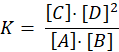 Stałą równowagi określa się jako stosunek iloczynów stężeń produktów podniesionych do odpowiednich potęg do iloczynu stężeń substratów podniesionych do odpowiednich potęg.