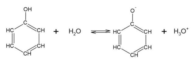 Fenole reagują z wodą z wytworzeniem jonów hydroniowych, które świadczą o odczynie kwasowym.