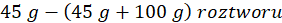 W tym zadaniu należy obliczyć, jaka masa soli przypada na masę wody obecnej w roztworze w temperaturze 50°C. Różnica między masą soli w roztworze w temperaturze 50°Ca masą soli w roztworze w temperaturze 20°C wskaże masę soli, którą można dosypać.