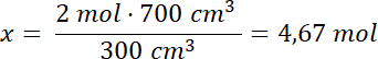 Ułóż proporcję, z której obliczysz liczbę moli KF: