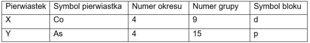 Informacja, że elektrony walencyjne pierwiastka Y znajdują się na jednej powłoce, pozwala zidentyfikować, że należy on do bloku p. Pierwiastek X znajduje się w bloku d, ponieważ jego elektrony walencyjne znajdują się na dwóch powłokach.
