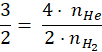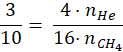 Dla objętości helu równej 6V objętość wodoru będzie równa 8V, a objętość metanu 5V.