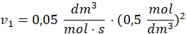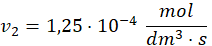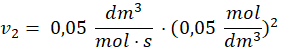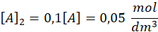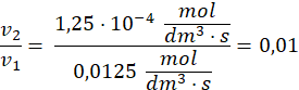 Ponieważ równaniu kinetycznym stężenie substratu jest podniesione do potęgi 2 to jego 10-krotny spadek powoduje spadek szybkości reakcji 100 razy.