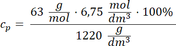 Skorzystaj ze wzoru na stężenie procentowe, masę molową i gęstość: