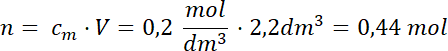 Skorzystaj ze wzoru na stężenie molowe i oblicz liczbę moli substancji: