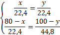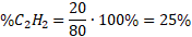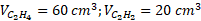 Załóżmy, że objętość C2H4 to x, objętość Cl2 to y, więc objętość C2H2 to 80-x, a objętość 2 Cl2 to 100-y.