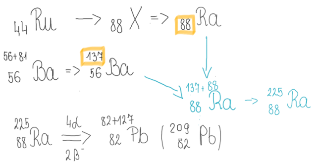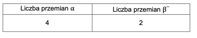 Uzupełnij tabelę, wpisując liczbę przemian α i β– zachodzących podczas powstawania izotopu ołowiu z opisanego izotopu pierwiastka X.