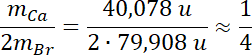 Odp. Stosunek masowy pierwiastków w bromku wapnia wynosi 1:4.