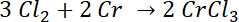 Po lewej stronie mamy 2 chlory, a po prawej 3. Jeśli zapiszemy dużą cyfrę 2 przed chlorkiem chromu i dużą cyfrę 3 przed cząsteczką chloru, bo obu stronach będziemy mieli po sześć atomów.