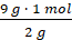 Oblicz liczbę moli cząsteczek w 9 g H2