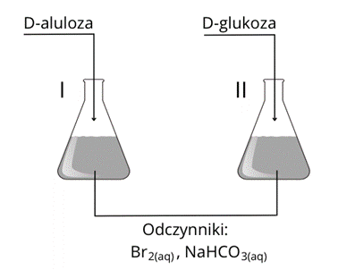 D-aluloza ma w swojej budowie grupę ketonową C=O. Glukoza ma w swojej budowie grupę aldehydową -CHO. Odczynnikiem, który pozwala na odróżnienie aldoz od ketoz, jest woda bromowa w środowisku lekko zasadowym. Aldozy powodują odbarwienie pomarańczowego roztworu wody bromowej, wydziela się bezbarwny gaz. W przypadku ketoz nie ma widocznych oznak reakcji.