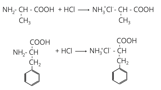 Zapisz reakcje alaniny i fenyloalaniny z HCl.