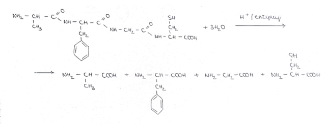 Zapisz hydrolizę kwasową peptydu Ala-Phe-Gly-Cys.