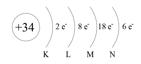 Liczba elektronów na kolejnych powłokach, licząc od jądra atomowego – konfiguracja elektronowa: K2L8M18N6