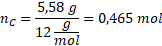 Wykorzystaj obliczenia z poprzedniego podpunktu, by policzyć liczby moli węgla i wodoru: