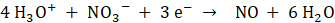 Aby wykonać bilans elektronowo-jonowy, najpierw zapisujemy równania połówkowe, wstawiając tylko niezbędne komponenty. Uwzględniamy liczbę elektronów, tak aby całościowy ładunek reakcji był taki sam po lewej i prawej stronie. Mnożymy procesy połówkowe, aby liczba elektronów oddawanych i przyjmowanych w obrębie całej reakcji była taka sama. Dodajemy obie reakcje połówkowe do siebie i wykreślamy rzeczy znajdujące się po jednej, jak i po drugiej stronie. Na koniec sprowadzamy równanie do najniższej wartości współczynników stechiometrycznych.