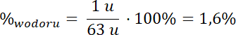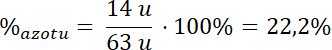 Oblicz procentową zawartość pierwiastków w związku – podziel masę pierwiastka przez masę całej cząsteczki i pomnóż przez 100%: