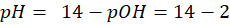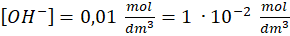 pH jest ujemnym logarytmem ze stężenia jonów H+ w roztworze a pOH ujemnym logarytmem ze stężenia jonów OH-. Ich suma w każdym roztworze zawsze wynosi 14. Z równania dysocjacji widzimy, że stężenie jonów wodorotlenowych jest takie dwa razy większe, niż stężenie wprowadzonego wodorotlenku.