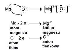 Wiązanie jonowe polega na całkowitym przeniesieniu jednego lub więcej elektronów z jednego atomu (mniej elektroujemnego) do drugiego atomu (bardziej elektroujemnego), w wyniku czego z atomów, które utraciły elektrony, tworzą się jony dodatnie (kationy), a z atomów, które zyskały elektrony, tworzą się jony ujemne (aniony).