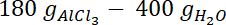 Z proporcji obliczysz, ile gramów chlorku glinu rozpuści się w 100 gramach wody: