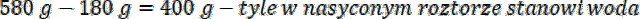 Odejmij od masy roztworu masę soli, aby otrzymać masę wody:
