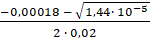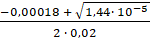 Δ = 0,000182 – 4 ∙ 0,02 ∙ (- 0,00018) = 1,44 ∙ 10-5