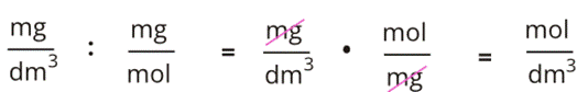 stężenie w mg/dm3 : masa molowa w mg/mol = stężenie w mol/dm3