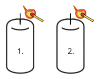 Obserwacje: Świeca pierwsza topi się szybciej niż świeca druga.
