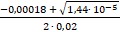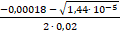 Δ = 0,000182 – 4 ∙ 0,02 ∙ (- 0,00018) = 1,44 ∙ 10-5