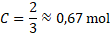 Liczba moli produktu C zwiększy się o 0,33 mola.