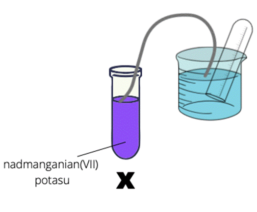 Obserwacje: W trakcie ogrzewania nadmanganianu(VII) potasu wydziela się bezbarwny, bezwonny gaz. W fioletowej substancji pojawia się zielona.
