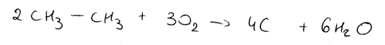 Spalanie niecałkowite: Alkan spala się kopcącym płomieniem do węgla (sadzy) i wody, kiedy ma minimalny dostęp do tlenu.