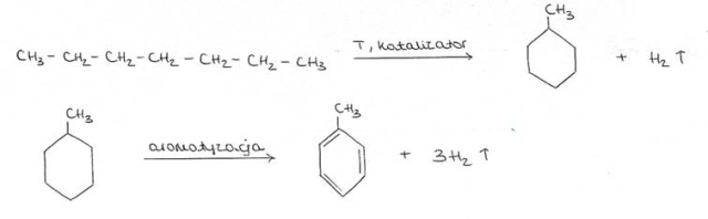 Toluen w procesie reformingu powstaje z n-heptanu.