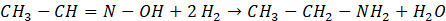 W tym zadaniu zapisz równania reakcji katalitycznej redukcji oksymu oraz podaj stopnie utlenienia w zachodzących reakcjach.