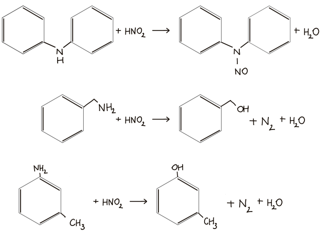 W tym zadaniu należy zapisać równanie reakcji między kwasem azotowym(III) a podanymi związkami chemicznymi.