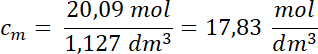 Odpowiedź: Stężenie molowe wynosi 17,83 mol/dm3.