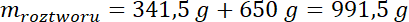 Sumując masę wody i masę amoniaku otrzymasz masę roztworu: