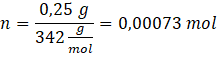 Entalpia spalania to entalpia spalania 1 mola związku, a w tym zadaniu jest podana entalpia dla spalania 0,25 g sacharozy, więc policz, ile jest to moli: