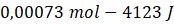 Jeśli spalając 0,00073 mola, otrzymuje się entalpię 4123 J, to spalając 1 mol tego związku: