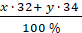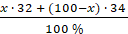 Korzystając ze wzoru na średnią masę atomową, tworzymy równanie z jedną niewiadomą x będącą szukaną procentową zawartością izotopu 32S. Po rozwiązaniu równania otrzymujemy odpowiedź.