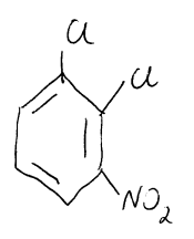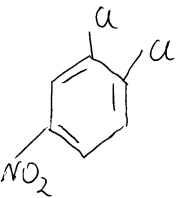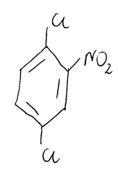 Związek A musi mieć strukturę symetryczną, aby w wyniku dalszego podłączenia grupy nitrowej była możliwa tylko jedna kombinacja. Będzie miał on więc atomy chloru ustawione w pozycji para. Związek B musi mieć tak ustawione atomy chloru, aby możliwe było podłączenie grupy nitrowej na dokładnie dwa sposoby. Warunkuje to ułożenie atomów chloru w pozycji orto.