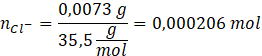 Natomiast liczba moli jonów chlorkowych wynosi: