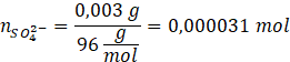 Liczba moli jonów siarczanowych(VI) wynosi: