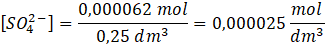 Liczba moli jonów siarczanowych w podanej objętości wody: