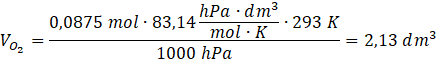 Korzystając z równania Clapeyrona obliczmy objętość, którą zajmie tlen w podanych warunkach: